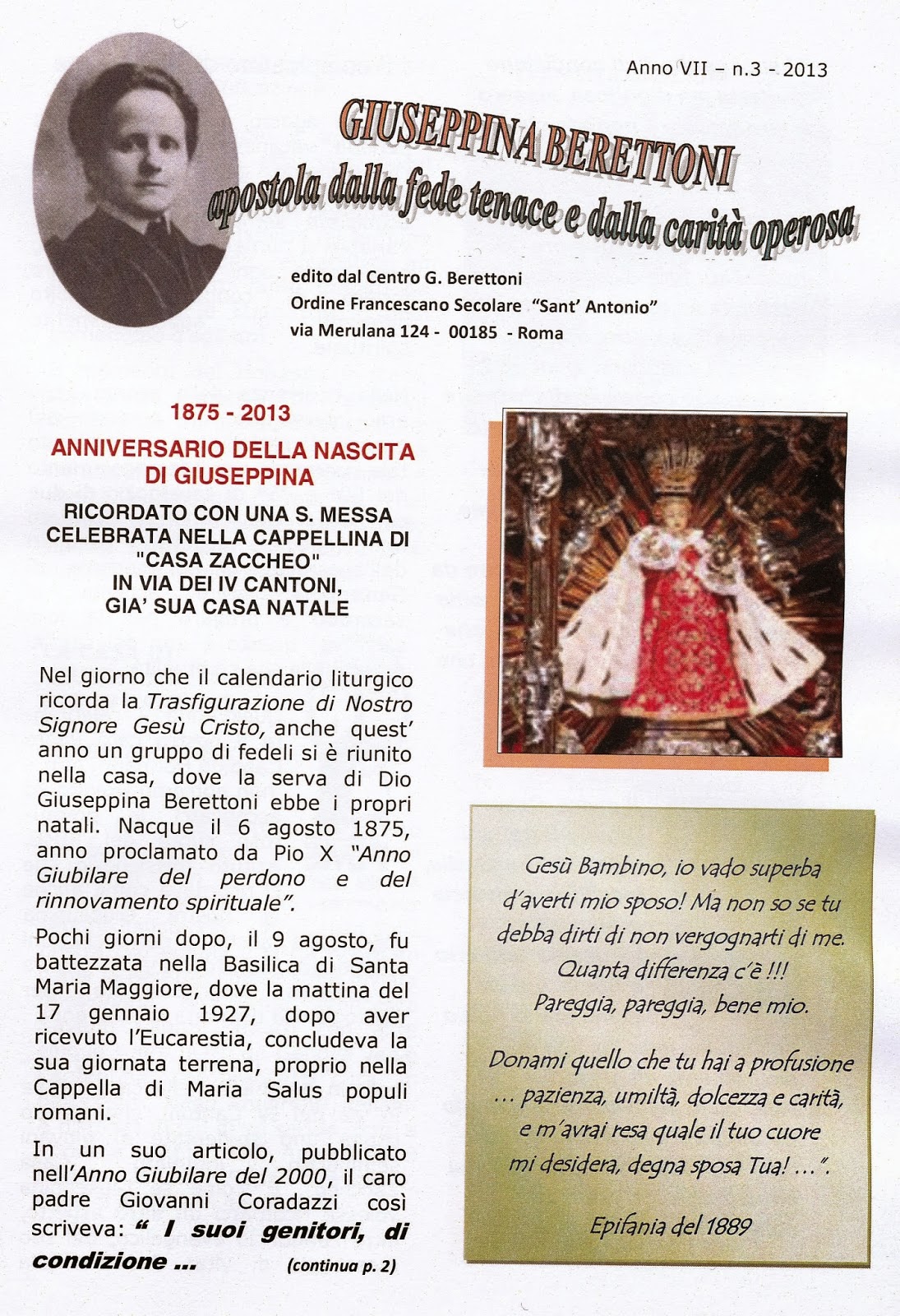 Blog del "Centro Giuseppina Berettoni" di via Merulana 124 - 00185 - Roma presso la Fraternità O.F.S. Sant'Antonio al Laterano